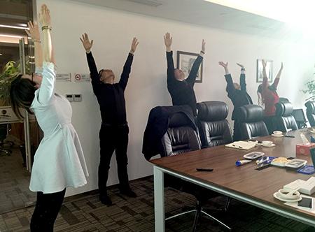 針對(duì)春季養(yǎng)生特點(diǎn),培訓(xùn)由“喝啥喲”、“按一按”、“動(dòng)一動(dòng)”、“‘藥’美食”四個(gè)環(huán)節(jié)展開。在了解了春季養(yǎng)生茶、穴位按摩法等相關(guān)知識(shí)后,大家在現(xiàn)場(chǎng)學(xué)習(xí)了一套健康操來舒緩平時(shí)的工作壓力。此外,雨佳老師還與員工們分享了她精心熬制的養(yǎng)生粥與自制的營(yíng)養(yǎng)果凍,并回答了大家提出的一些健康養(yǎng)生問題。培訓(xùn)中,雨佳老師幽默的講解、有效的互動(dòng),取得了良好的培訓(xùn)效果。