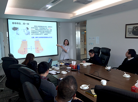 4月10日下午,由人力資源總部與醫(yī)療養(yǎng)老事業(yè)部共同發(fā)起的“你好,春天”員工健康養(yǎng)生培訓(xùn)在集團(tuán)總部VIP會(huì)議室舉行,總部近20名員工參加了培訓(xùn)會(huì)。本期培訓(xùn)的主講嘉賓是集團(tuán)醫(yī)療養(yǎng)老事業(yè)部健康管理主管張雨佳。雨佳老師畢業(yè)于江西中醫(yī)學(xué)院中醫(yī)本科,具有多年中醫(yī)臨床和健康管理的豐富經(jīng)驗(yàn)。